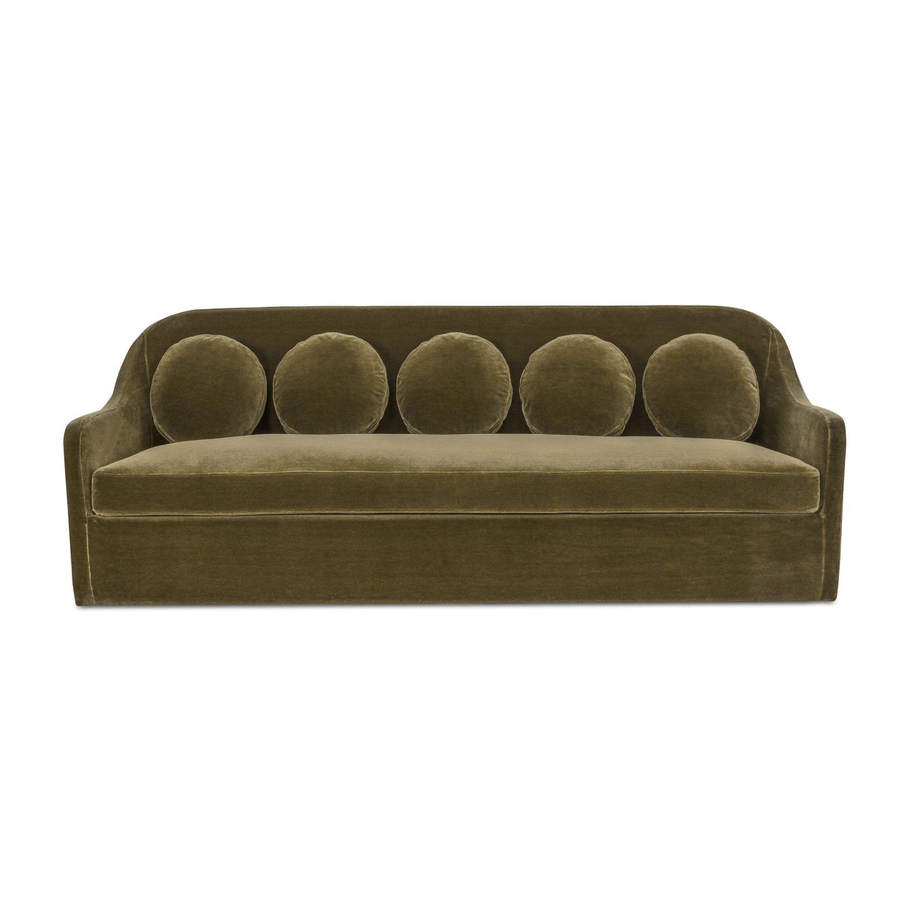 Blending timeless design with modern sensibility, the Rialto Sofa brings mid-century charm to your living space. Its distinctive silhouette showcases five generously proportioned, rounded pillows that invite comfort and conversation. Crafted in sumptuous dark green faux mohair, this piece marries refined aesthetics with practical durability—a sophisticated statement that gracefully accommodates the rhythms of daily life while maintaining its elegant presence.