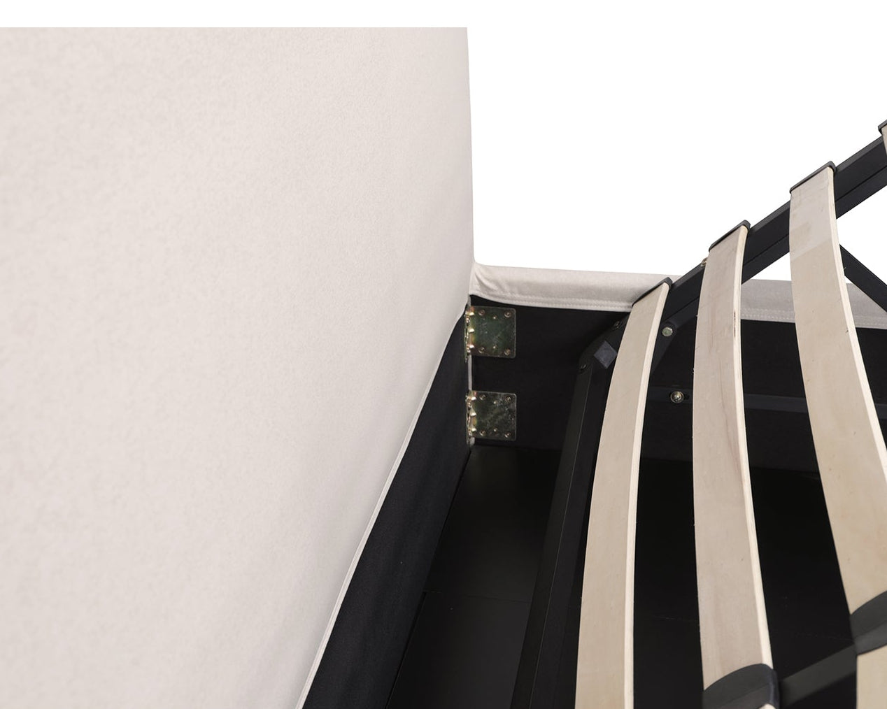 Discover understated elegance with the Joan Queen Storage Bed upholstered in a neutral cream fabric. This thoughtfully designed piece conceals a practical advantage—a hydraulic lifting mechanism beneath the mattress unveils generous storage capacity, keeping your bedroom organized without compromising style. The detachable slipcover simplifies maintenance, while the coordinating upholstered frame offers versatility, allowing you to style it with or without the cover. A refined solution that seamlessly balances form and function.